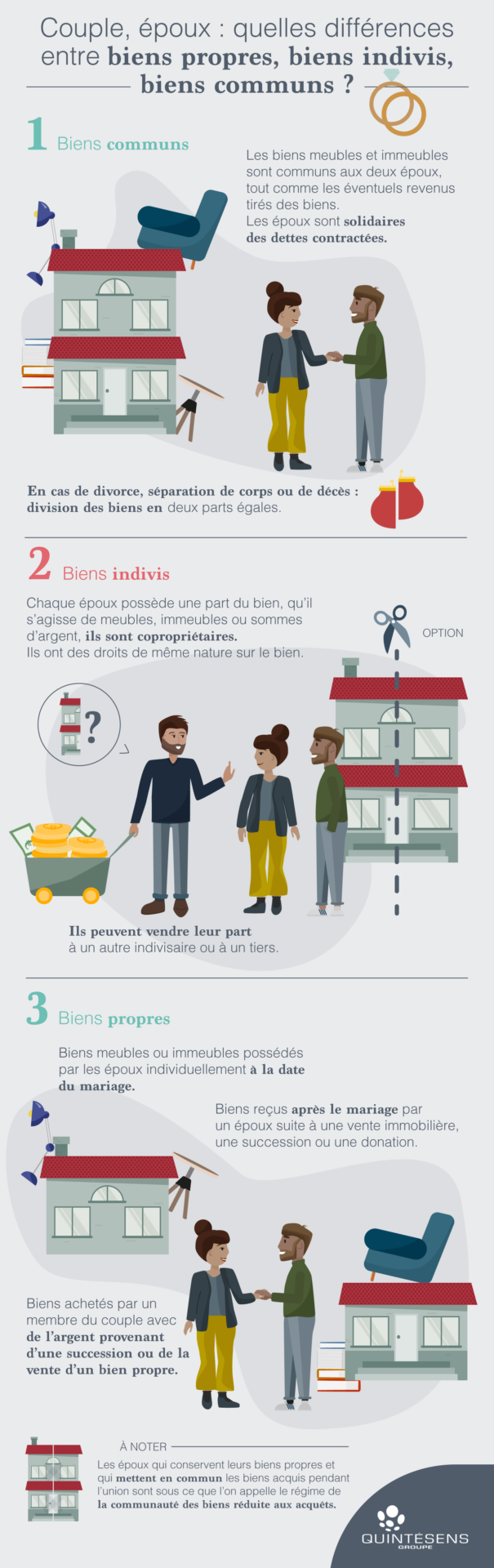 Biens indivis, biens communs, biens propres… Il n’est pas toujours aisé de comprendre les différences entre les types de biens pouvant être possédés par des époux. Quelles sont les subtilités à connaître ?