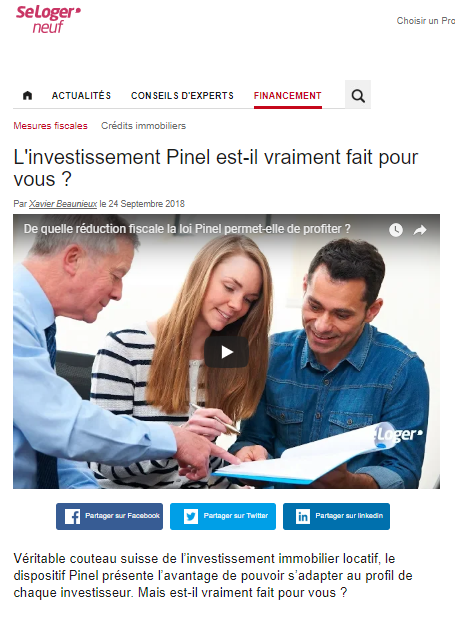 Dans un article paru dans Seloger.com, Julien Joubert s’exprime sur les avantages fiscaux qu’offre le dispositif Pinel.